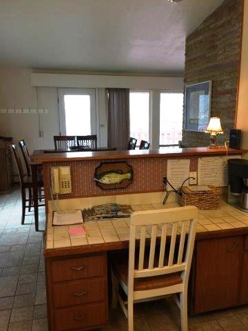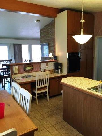 This kitchen is a chefs dream come true. Two fridges, one located in the the garage just outside the kitchen. Other amenities include, dish washer, oven, cook top, coffee maker, toaster oven, blender, all utensils, dinner ware for twelve, plenty of pots and pans, a large two bay sink, and a radio -TV. The main appliances are less than two years old. Within the kitchen area is a four person table and counter area. The counter tops are tiled and very clean. You may choose to cook inside or use the barbeque grill located on the deck. You will not need to bring grocery items from home. Located within three miles is Meijer's and WalMart. You can shop locally for all your needs. We do recycle in Coldwater. You will find plastic, can, and bottle recycle bins located in the garage. Two large garbage canisters are provided, we ask that you place them curbside on Wednesday evening. Back To House Description
