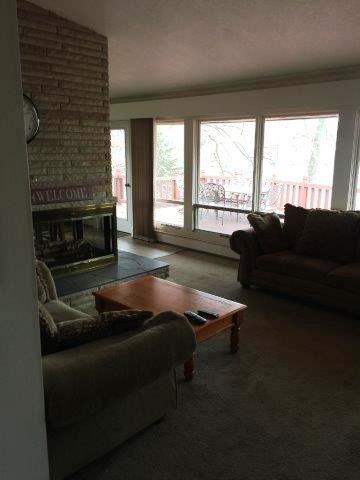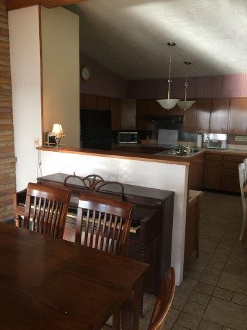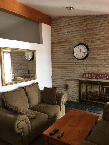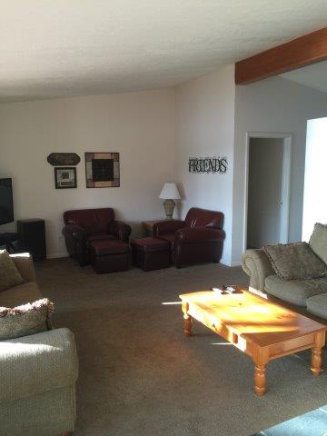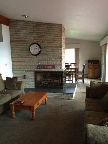 You're going to love this living room. Very spacious looking out towards Randall Lake. Six picture windows present an excellent view. From the living room you access the spacious 1000 sq. ft. deck. Two couches and a reclining chair await your relaxation. A TV, VCR, and DVD are provided for your viewing pleasure. A stereo with cassette and CD player need to be adjusted to your favorite listen pleasures. The couch is a pull out bed if required. Back To House Description